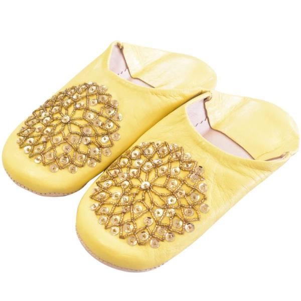 ・モロッコ スパンコール ビーズ バブーシュ 革 室内履き