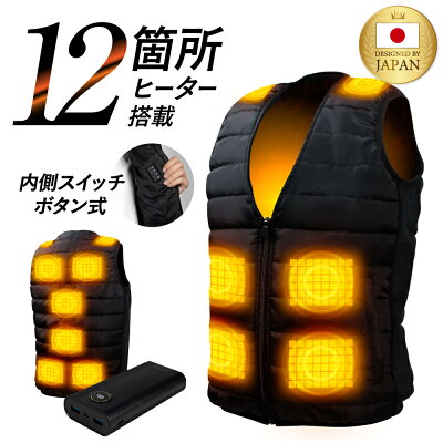 電熱ベスト 加熱服【前後21箇所発熱 30000mAhモバイルバッテリー付属 】