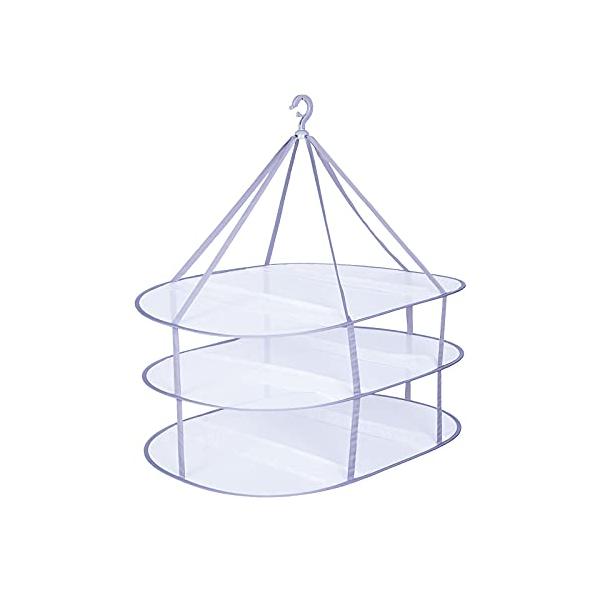 OAKOAK 物干しネット ランドリーネット平置きネット 3段構造 大容量 防風 折りたたみ 収納袋付き 通気 (灰色)